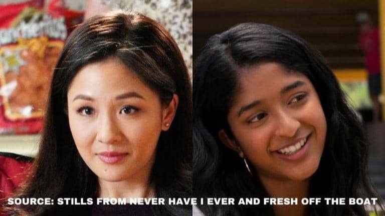 Credits: Stills from Fresh off the Boat, Never Have I Ever, and Little Mosque on the Prairie. Into the Badlands Instagram, Never Have I Ever Instagram, Killing Eve Instagram.
