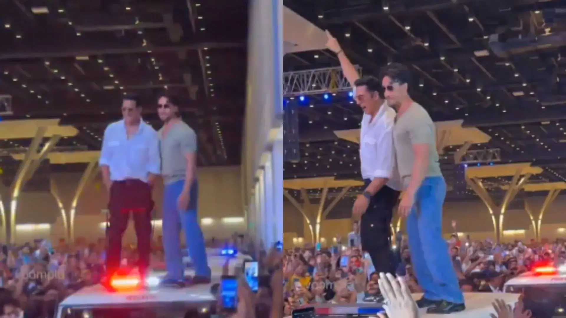 In the video, the actors can be seen balancing on two cars. In the video they can be seen greeting their fans and members of Mumbai police seated in the audience. Tiger wore denim jeans and a t-shirt, looking casual and cool, while Khiladi actor sported a white shirt and black cargo pants for the occasion. Social media users have been cheering for their movie together in a video that captured their big debut. The actors will soon co-star in the film Bade Miyan Chote Miyan.