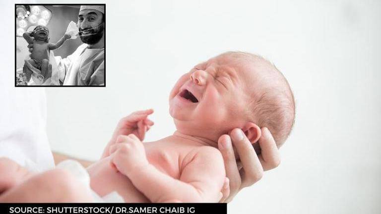 A number of unique pictures or funny videos often pave their way to the internet and go viral on social media. Recently, a picture of a newborn baby pulling a doctor’s mask grabbed major attention on the internet. A Dubai-based doctor Dr.Samer Cheaib took to his Instagram to share a picture of him holding a new born. In the monochrome picture, the baby is seen firmly holding and pulling off the doctor’s mask as he flashes his wide smile underneath the mask.