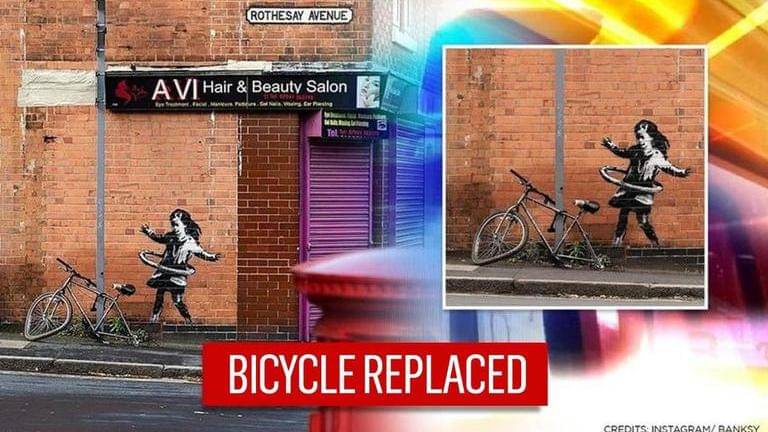 The bicycle, which formed part of a hula-hooping girl artwork by Banksy, and went missing over the weekend has been replaced with a new bike. According to Sky News, the bicycle was apparently retained by the owners of the property for safekeeping and has been replaced with a new one. Earlier, it was reported that the bicycle went missing over the weekend from the site in Nottingham, where it was placed by the street artist.
