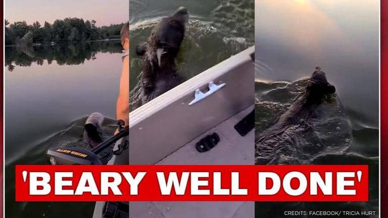 At first, the US-based family had thought it was a dog but going up closer they realised it was a bear. In the video posted, the black bear baby can be seen struggling to breathe with the huge plastic jar stuck to its head. While speaking to the media outlet, Tricia said that while her son manoeuvred the fishing boat to get closer to the animal, her husband leaned over the edge to grab the container in a bid to remove it.
