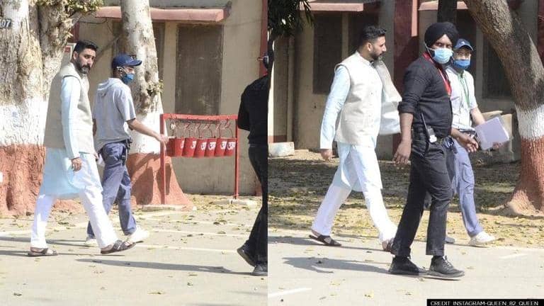 Actor Abhishek Bachchan’s pictures from sets of the upcoming film Dasvi in Agra have started surfacing online where he can be seen wearing white kurta pajama.