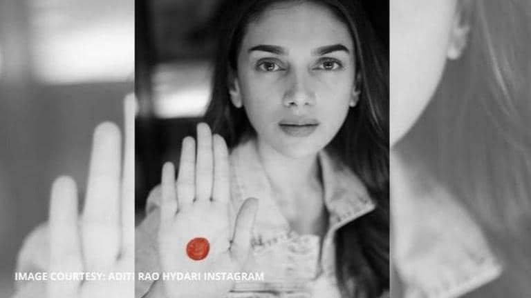 Aditi Rao Hydari recently took up the red dot challenge to put a full stop to period shaming that has been prevailing in the society. Have a look at the pic