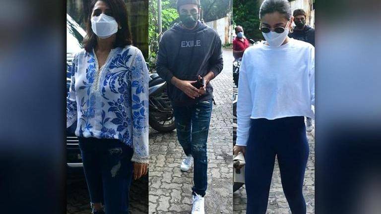 The Student Of The Year actor donned a white top, blue bottoms and white shoes, and accessories her look with a sling bag. She was twinning with Ranbir Kapoor's mother, Neetu Kapoor, as the veteran actor fashioned a comfy blue and white printed top with a pair of blue jeans. The two also wore matching white masks. Alia Bhatt tied her hair in a bun while Neetu Kapoor left her hair open. Neetu Kapoor also held an umbrella due to mild showers. Ranbir Kapoor also kept it casual with a grey hoodie, blue jeans and a cap.