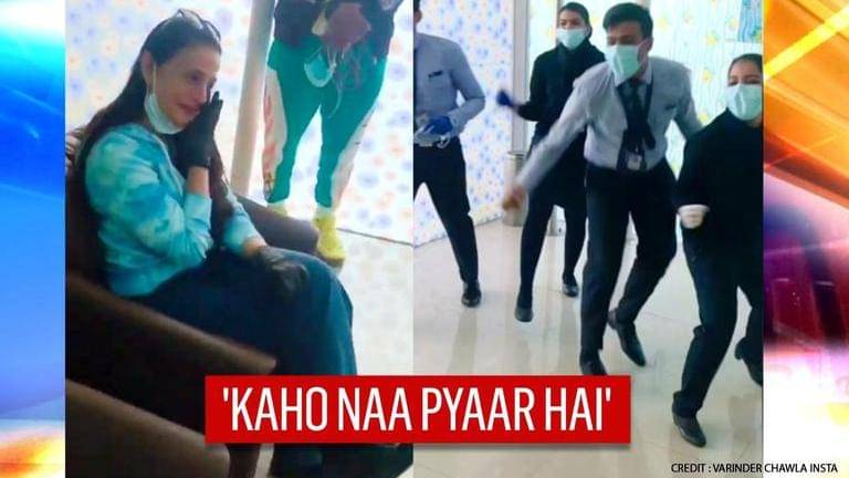 Ameesha Patel gets teary-eyed after an airline staff dances on 'Kaho Naa Pyaar Hai' song