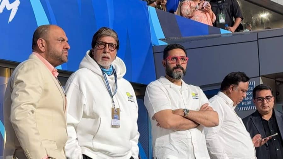 Social media platforms were flooded on Friday with worried fans enquiring about Amitabh Bachchan's health after several reports claimed the megastar had undergone an angioplasty procedure for either a clot in his leg or a blocked artery. On Friday evening, he was snapped at a cricket stadium in Mumbai with his son Abhishek. They were seen enjoying the finals of the Indian Street Premier League (ISPL) as their team Majhi Mumbai took on Tiigers Of Kolkata at the Dadoji Kondev Athletics Stadium.