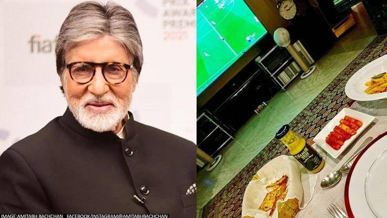 Taking to his Instagram handle, Amitabh Bachchan recently shared a photo from his break time between shoots. The photo had football premiere league on the TV screen while Big B enjoyed some snacks kept before his table. In his caption, he mentioned he was craving for such a break. The actor wrote, "after a long work break .. Premier League Football , pasta, French fries, garlic bread … aur ..NAAGIN sauce .. !!! Aaahhhh haaa …तड़प गए थे इसके लिए !!" (I was yearning for this.) The actor's fans were thrilled to see him have Naagin sauce. While some asked about its brand, others quipped they would love to try the sauce.