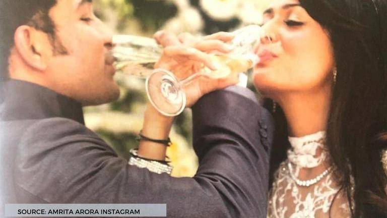 Amrita Arora and husband Shakeel Ladak are celebrating 11 years of togetherness and marital bliss today, i.e. on March 4. On this occasion, Amrita took to her social media handle to share a beautiful picture from her wedding day. The picture has Amrita and Shakeel drinking champagne from a glass with their hands intertwined against each other.