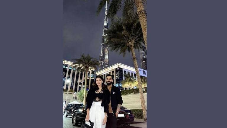 Actress Anushka Sharma, who is currently vacationing in Dubai, posted a picture with her husband Virat Kohli on her Instagram on Saturday. Anushka and Virat posed in matching black jackets with the world's tallest building, the Burj Khalifa in the background. Anushka captioned the image, "This city, us, last night."