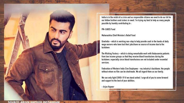 Recently, Arjun Kapoor donated to Maharashtra CM Relief Fund, PM-CARES and other funds and lauded the govt's efforts to contain the spread of the Coronavirus