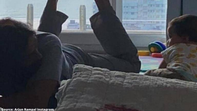 Arjun Rampal recently posted a picture of himself and son Arik having an adorable 'crawling combat' amid lockdown. Read further to know more details.