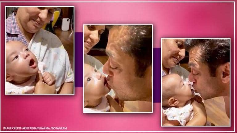 Arpita Khan Sharma has shared undoubtedly the cutest video that you will see on the internet today. Arpita gave birth to her second child, daughter Ayat Sharma on her brother Bollywood superstar Salman Khan's birthday last year. In the video, Salman can be seen adorably playing with baby Ayat as he puckers his lips to plant kisses on the toddler's face.