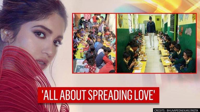 The actress wanted to bring cheer among underprivileged children by providing healthy food and hence she joined hands with an NGO Pankh. The Bala actress provided a meal to about 100 children associated with the NGO. The actress shared pictures of the children enjoying their meal on Valentine’s Day. The actress captioned the series of pictures and wrote, “all about spreading love and be grateful for love :) This Valentine’s was with the kids of @projectpankh in Rishikesh. Am full of gratitude and warmth :)#HappyValentinesDay.” At last, the actress also gave a glimpse of the poster that was prepared by the children to acknowledge the beautiful gesture of the actress. Bhumi was completely impressed with the entire setup of the NGO afterward which she decided to gift the children with delectable food.