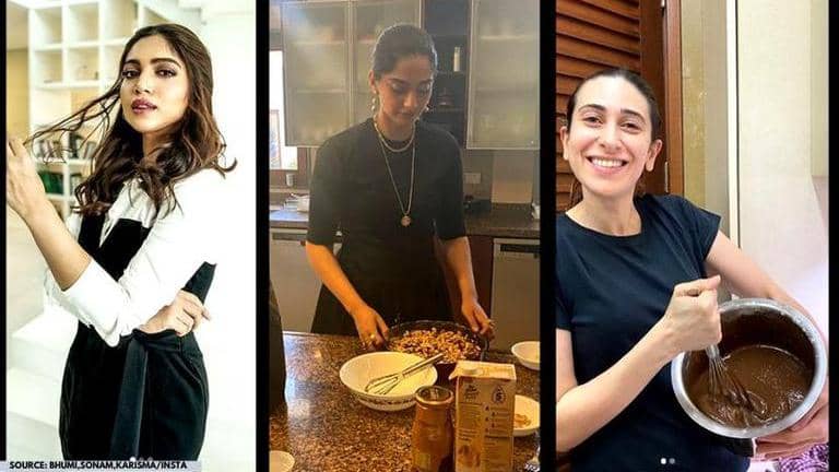 Many B-town actors have begun baking at home amid COVID-19 lockdown. Here's a look at Bhumi Pednekar, Karisma Kapoor and others pics depicting culinary skills.