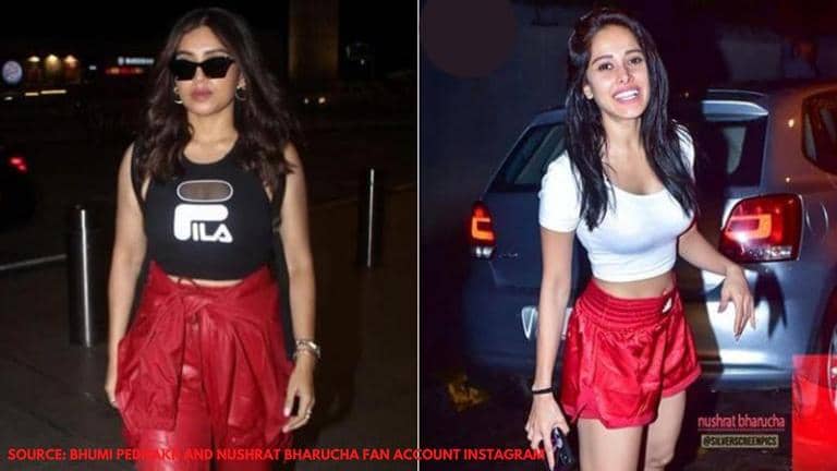 The two very popular actors from the new generation of Bollywood diva, Bhumi Pednekar and Nushrat Bharucha are not only seizing the audience's attention for their compelling performances but also winning hearts with the inspirational style files. In the recent past, Bhumi and Nushrat were spotted in a similar red ensemble. Bhumi Pednekar's leather pants or Nushrat Bharucha's shorts, whose red lowers do you love the most?