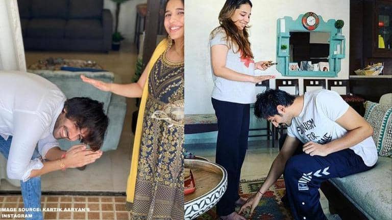Kartik Aaryan recently took to Instagram to share a heart-warming post with his sister Kritika Tiwari. Kartik Aaryan’s post featured three photographs. The actor appears to be indulging in Raksha Bandhan festivities in the Instagram post. Further, Kartik also appears to be touching his sister’s feet in one of the photographs.