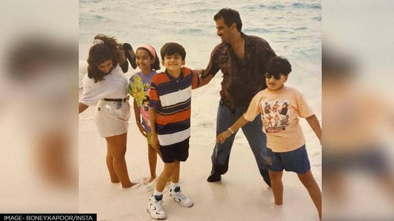 Taking to his Instagram handle, Boney Kapoor recently shared a picture from an old family album featuring Sonam Kapoor and his son Arjun Kapoor. In the photo young Boney Kapoor could be seen wearing a brown shirt and blue jeans while he was standing on a beach with his legs dipped in water. The photo also had his nephew Akshay Marwah in a blue, red and white striped t-shirt. A young Arjun Kapoor could be seen wearing a pair of goggles and dressed in a peach t-shirt and blue shorts.