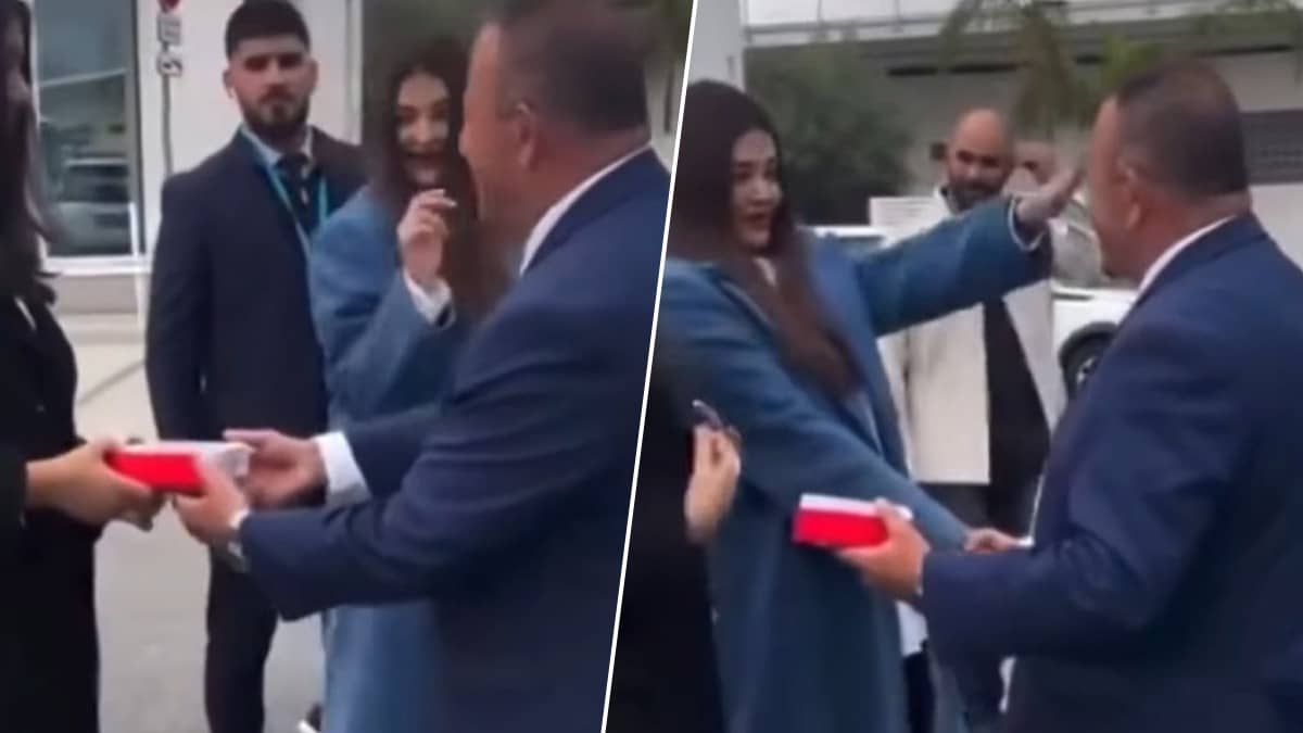 In the viral video, Aishwarya can be seen wearing a long blue coat paired with a white top and black pants. Aaradhya, on the other hand, can be seen in an all black look. She can be seen laughing while interacting with a man who welcomed them at the airport. He hands a gift to her daughter before making their way to Cannes.