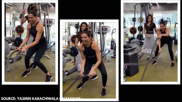 Bollywood actor Deepika Padukone was recently seen giving her fans some major fitness goals after a video of her exercising surfaced online. Deepika Padukone, apart from being an ace actor, is also known for her well-toned physique. Celebrity fitness trainer Yasmin Karachiwala posted a video of Deepika working out on battle ropes. The actor was seen wearing an all-black gym attire as she works out at the gym. Check out Deepika Padukone's fitness videos posted by Yasmin Karachiwala, here.
