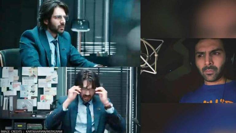Kartik Aaryan took to his Instagram account on Thursday to share a glimpse of his subbing session for the trailer of his upcoming thriller film, ‘Dhamaka’.