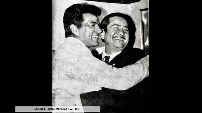Bollywood actor Dharmendra remembered the veteran star Raj Kapoor on the occasion of his birth anniversary. He shared a throwback photo of himself alongside him through his official social media handles. The Mera Naam Joker co-stars are smiling for the candid capture in the monochrome picture on the photo-sharing platform. Here is everything you need to know about Dharmendra's photos on Raj Kapoor's birth anniversary.