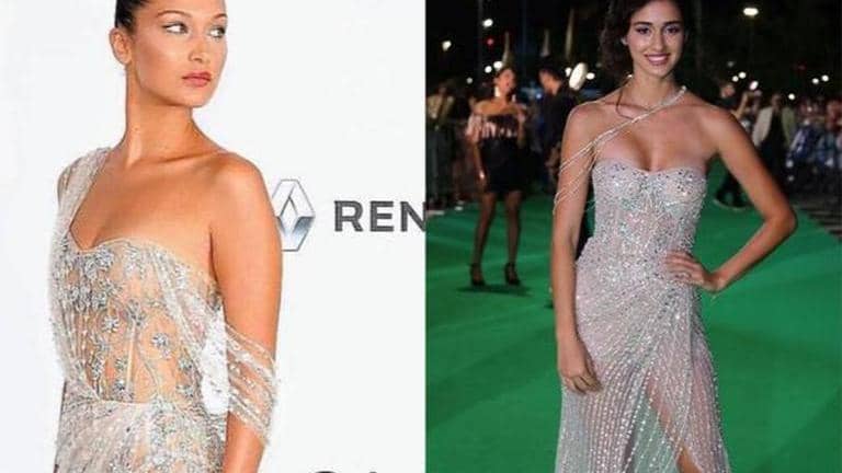 Bollywood actor Disha Patani and American model Bella Hadid have one thing in common. They are widely noted for their unique fashion sense and style. The two are often seen sporting different stylish outfits. Both of them once wore a similar outfit. Disha was seen wearing a gorgeous beaded ivory gown, in IFFA awards 2017, and Bella once donned a similar outfit at the Cannes Film Festival. Read on to know how the two pulled off the dress and who looked better. Check out their photos: