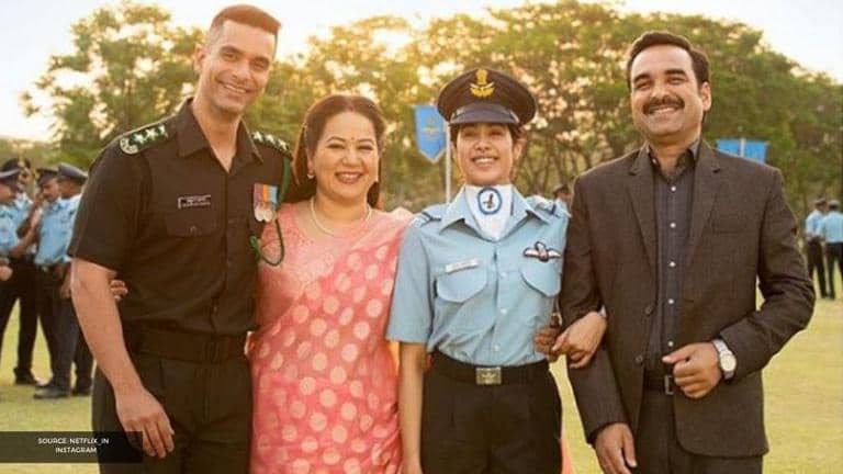 Gunjan Saxena: The Kargil Girl cast features Janhvi Kapoor in the titular role, with Pankaj Tripathi as her father Anup Saxena, Ayesha Raza Mishra as her mother Kirti Saxena, Angad Bedi as her brother Anshuman Saxena. It also has Manav Vij as Commanding officer Gautam Sinha, Vineet Kumar Singh as Fight commander officer Dileep Singh and Chandan K Anand as Chief Instructor Ashish Ahuja. The movie is bankrolled by Dharma Productions and Zee Studios.