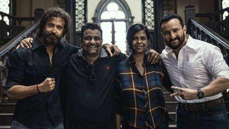 Hrithik Roshan recently shared two pictures from the sets of Vikram Vedha as he wrapped up the film's shoot. The actor shared smiles with the film's writer-directors Pushkar and Gayathri. Saif Ali Khan also joined them for a picture.