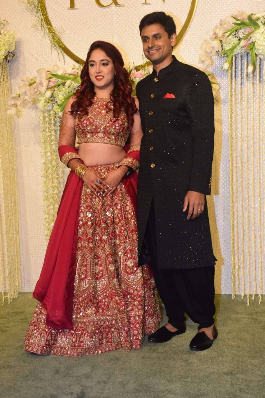 After an expansive wedding involving a much celebrated registry, a Marathi wedding and a Christian wedding, Ira and Nupur are now concluding their wedding festivities with a star-studded Mumbai reception. While Nupur can be seen dressed in an all-balck bandhgala ensemble, Ira Khan has opted for the classic red and gold combo for her reception lehenga.
