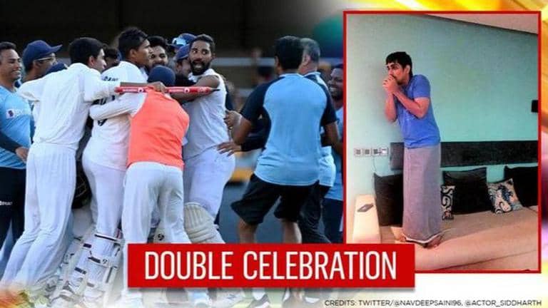 Dressed in a lungi and T-shirt at home, Siddharth had his hands folded in excitement and worry as his mother clicked him standing on top of the sofa while watching the match. He quipped how that was the way they watched TV at home. Interestingly, it was a double celebration for the Rang De Basanti actor as his ‘Amma’ also celebrated her birthday.