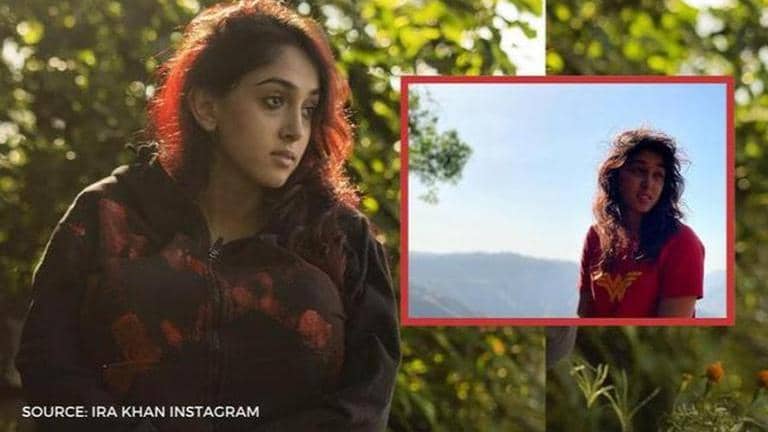 Ira Khan shared two pictures on her Instagram from her trip to Panchgani. The first picture shows Ira sitting on a chair as the stunning mountains and blue sky fill the background. The second picture is a close up of Ira. She can be seen wearing a red t-shirt with a Wonder Woman logo. She has an awkward expression on her face as she looks away from the camera.