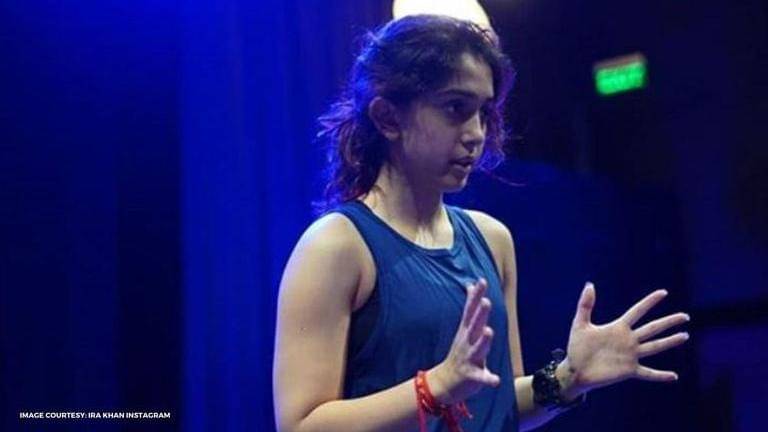 Ira Khan recently took to Instagram to share a picture from the time when she was a part of an important discussion at G5A. In the picture posted, she can be seen immersed in a discussion as she speaks to the audience with twinkling eyes. She is seen holding out both her hands as she appears to use hand gestures to aid her explanation.