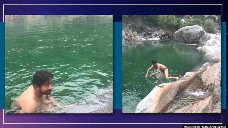 Irrfan Khan's son Babil on Tuesday shared two throwback videos of his father taking a dip in freezing ice water on his Instagram handle. From what it looks like, the place is a hill station and Irrfan can be seen saying, 'It is ice' while his friends cheer him for jumping in the water. Actors Anup Sonii and Ishaan Khatter dropped heart emojis in the comments section.