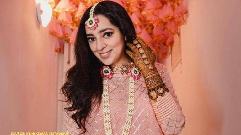 J P Dutta and Bindiya Goswami’s daughter Nidhi Dutta recently posted pictures from her Mehendi ceremony. In the pictures, she was seen showing off her henna. Nidhi Dutta was dressed in a beautiful pastel coloured ethnic suit. Her kurta was complemented with golden stripe detailing. Nidhi Dutta accessorised her look with floral jewellery.