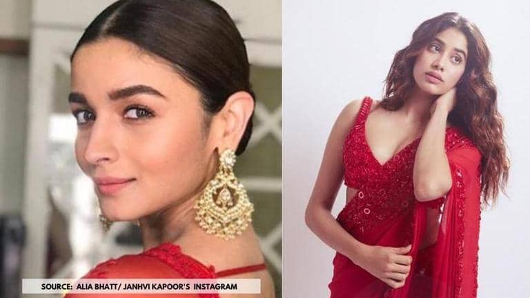 Bollywood actors slay their looks at major red carpet events. They steal the show with their impeccable sartorial choices. Since the government announced nationwide lockdown amid the COVID-19 crisis, various celebrities and the general public have been sharing their photos in saree. To stay up to the mark in the fashion world, we have shared photos of Alia Bhatt and Janhvi Kapoor in dazzling red sarees. Take a look at their photos: