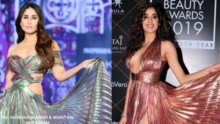 While many loved the look of Janhvi, there some similarity with Kareena Kapoor's dress. Kareena Kapoor was seen wearing a similar-looking dress when she walked the ramp at Lakme Fashion Week. The actor looked stunning in a teal and purple-toned pleated dress when she walked the ramp as the showstopper for Monisha Jaising.