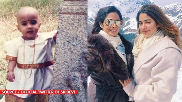 The picture showcases Janhvi Kapoor as a bald toddler. It was posted on Sridevi's verified Twitter account back in 2016. Kapoor looks adorable as she sports a red Bindi and gold chain that runs all the way to her tummy. Janhvi is seen dressed up in a pretty South-Indian attire and looks absolutely posing next to a pillar.