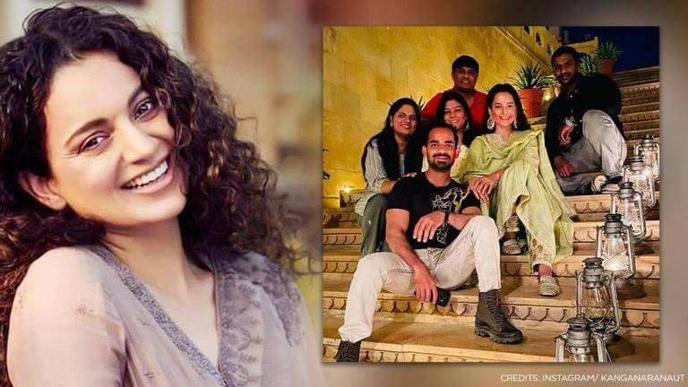 After receiving a traditional welcome in Jaisalmer to resume shooting for Tejas, actress Kangana Ranaut will have a working Holi this year. The actress recently took to Twitter and gave a glimpse of the celebrations. Kangana shared a picture with her film Tejas' 'Squad' while explaining how she is juggling work and celebrations.