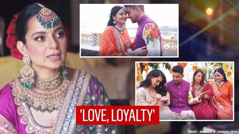 Kangana Ranaut and Rangoli Chandel on Saturday shared a beautiful video of their brother Aksht's wedding in Udaipur. Rangoli wrote, "Marriages may be made in heaven but we work on them in this world, their love, loyalty and passion for each other is so heartwarming, I couldn’t keep myself from crying, sharing this lovely video from @gaatha.co.in Amazingly shot."