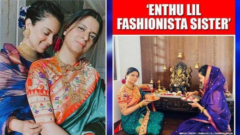 On Tuesday, Rangoli Chandel took to her Instagram handle to share an emotional post of sister Kangana Ranaut wearing her old saree for her Grih Pravesh Pooja