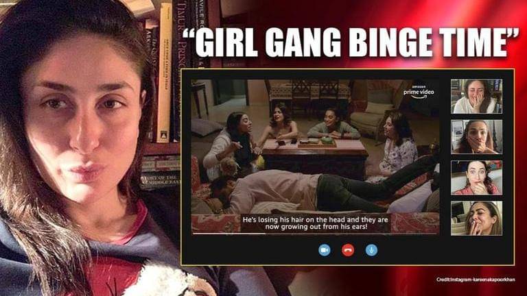 Taking the banter with Amazon Prime Video, Kareena Kapoor Khan posted a screenshot of her girl gang -- including herself, sister Karisma Kapoor, Malaika Arora, and Amrita Arora -- as they watched the new season of the Amazon series Four More Shots Please from their respective houses.