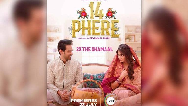 The creators and stars of the film revealed its trailer on July 12, 2021. Vikrant Massey also took to his Instagram handle to share the trailer of the film. His caption read, "14 Phere #2xDrama2xDhamaal, ye #14Phere shaadi hogi kamaal. You are invited to witness the ultimate craziness unfold - 23rd July, on #ZEE5. Save the date!". The trailer saw how Sanjay and Aditi, two opposite characters, fall in love during their college. They later plot a plan to get married with the blessings of their families, who are against love marriage. The film also has Gauhar Khan and Jameel Khan in pivotal roles. The film will release on July 23, 2021, on Zee5.