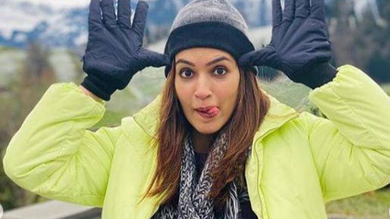Kriti sported a neon lime green bomber jacket on top of a plain black tee and blue jeans. Her eccentric scarf was surely the highlight of her outfit amongst the backdrop of Swiss mountains in the pic.