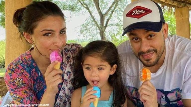 'Lootcase' actor Kunal Kemmu recently posted a photo with his wife Soha Ali Khan, and daughter Inaaya, while they were all ready for a bike ride in the city.