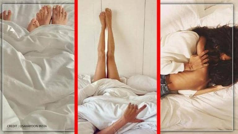 Lisa Haydon's 'Stay at Home' story is unique, 'white' and full of love. The actor took to her Instagram handle to share a series of eight pictures flaunting her legs, her baby Leo's feet and an adorable cuddle with son Zack.
