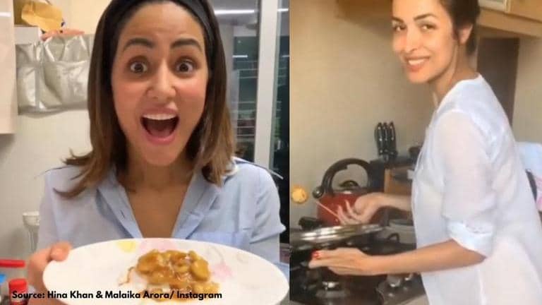 While Malaika Arora cooked some scrumptious paniyarams, Hina Khan whipped out some delicious pancakes. Take a look at how they aced their cooking skills.