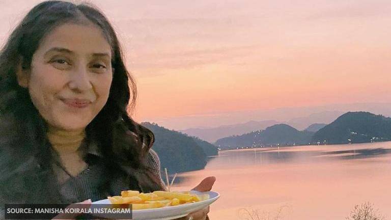 Manisha Koirala shared glimpses from her trip to Pokhra and penned her experience of watching the sunset at Begnas Lake as she binges on some french fries