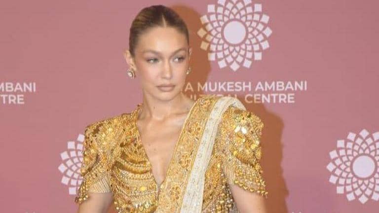 Gigi Hadid looks effortlessly stunning in ivory-gold saree at NMACC gala