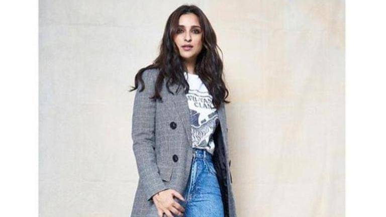 In this casual look, the actor can be seen wearing jeans and a white t-shirt. The actor is also wearing an overcoat. Parineeti's messy hair goes well with her look.