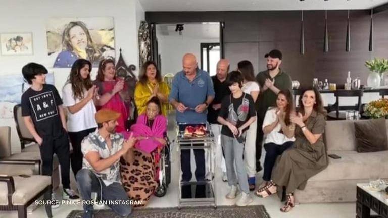 Suzanne Khan, Hrithik Roshan and their kids become a part of Rakesh Roshan's 71st birthday celebration. Pinkie Roshan shares a video on her Instagram.